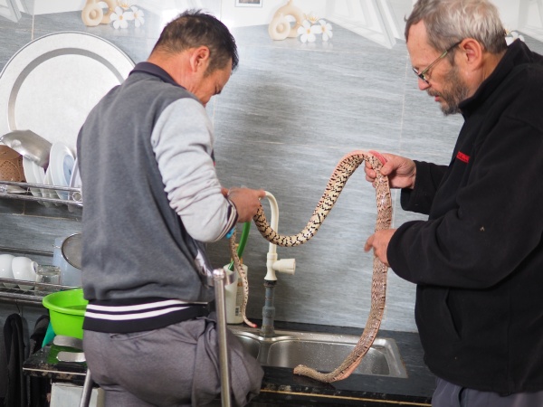 Způsoby usmrcení a zpracování hadů se liší podle místa, lidí a situace. Setkal jsem se i s tím, že se hadi usmrtí opařením ve vroucí vodě, což současně umožní snadnější odstranění svrchní svlékací kůže. Jde však spíše o venkovskou a improvizovanou praxi, nikoli o univerzální postup. Po usmrcení se hadovi oddělí hlava, tělo se podélně otevře, vyjme se vnitřek a odstraní páteř.