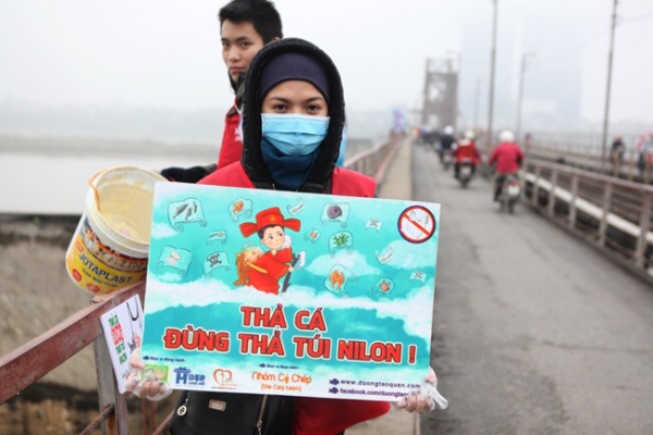 A tak dnes můžeme vidět třeba v Hanoji u jezer mladé studenty, jak se snaží poučovat především starší, aby rybky nejprve ze sáčků vyjmuli.